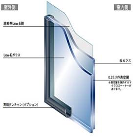 - 日本板硝子のスペーシア・・値段が一番高いが性能も一番良いです、真空なので結露は本より防音機能も兼ね備えていますし6.2mmと薄いのでゴム交換で済みますし網戸も当たりませんそれにガラスの大きさも変わりません。