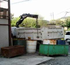 カレット屋さん(ガラス屑処理業者)が来て溜ったガラス屑を回収して行きました。