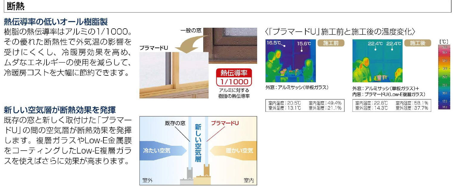 二重窓の場合、外気温13度/室内温度22度